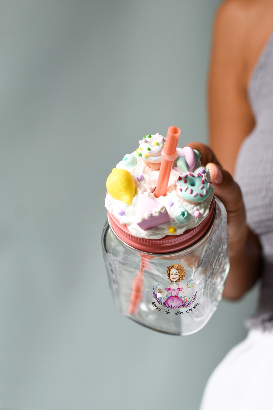 Produsul este personalizat cu figurine din lut polimeric. Fiind modelate manual pot fi mici diferențe față de un model precedent, fiecare produs este unic în felul lui. Capacitate: 130 ml.