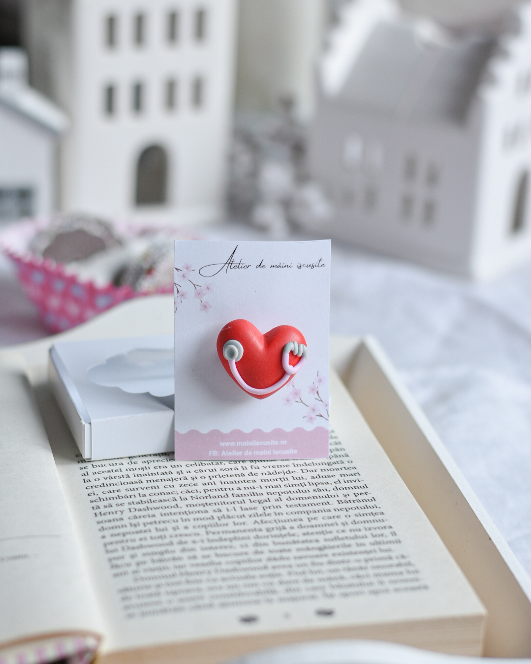 Produsul este personalizat cu figurine din lut polimeric iar pinurile sunt din argint. Fiind modelate manual pot fi mici diferențe