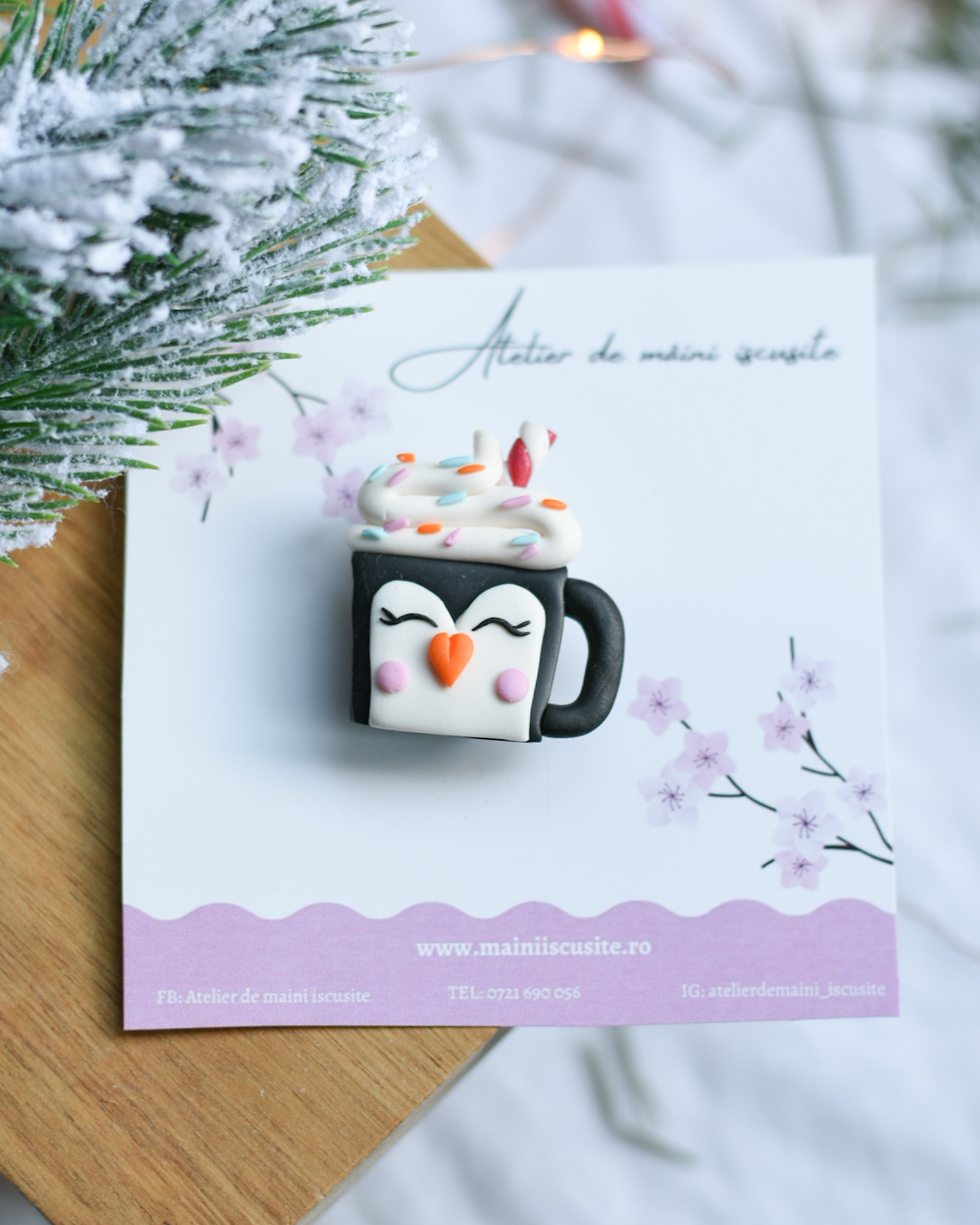 Produsul este personalizat cu figurine din lut polimeric iar pinurile sunt din argint. Fiind modelate manual pot fi mici diferențe